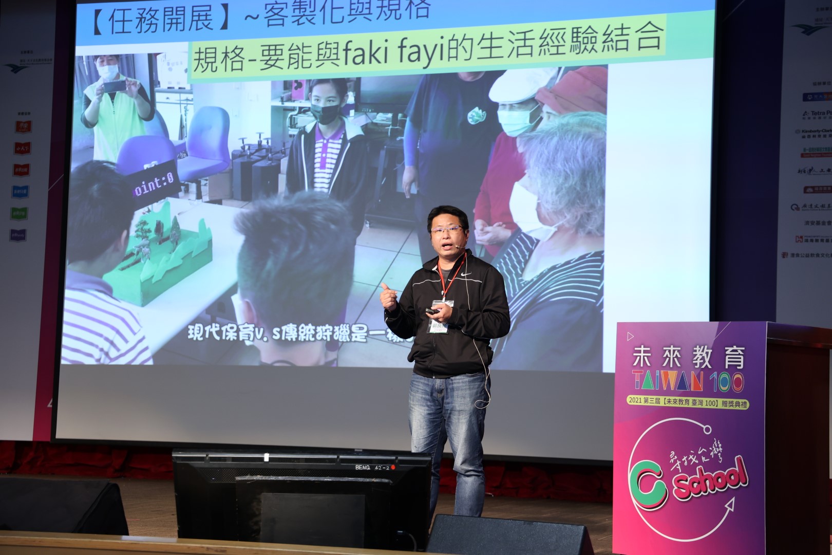 面對從小與網路為伍的數位原住民,培養科技能力和素養成為教育首要任務。臺東縣康樂國小老師郭良苑以「Faki Fayi NO.1」計畫,讓孩子發揮數位專長,設計屬於長者的數位遊戲裝置。他表示,「現在的小孩對科技掌握很快,也很靈活,帶著他們寫程式、做遊戲來幫助長輩,除了獲得知識,也讓科技成為有溫度的學習工具。」