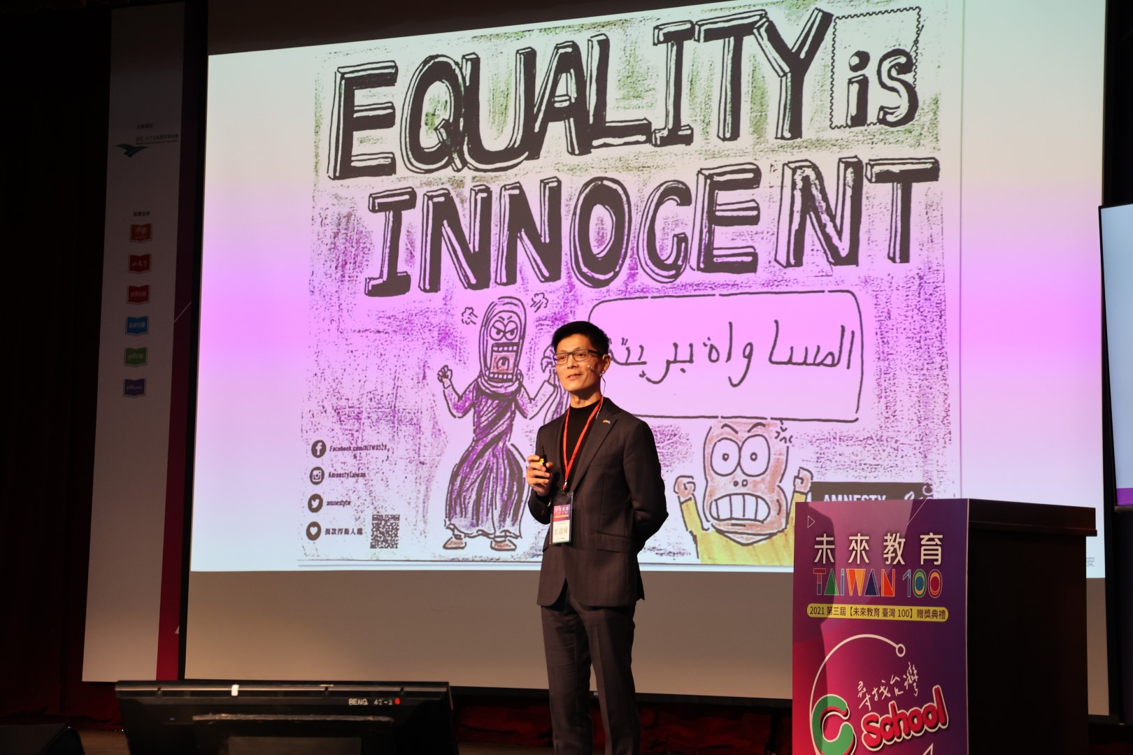 「我看見學生寫阿拉伯文,但他明明沒學過,一問才知道是用Google翻譯來的。」臺中市福科國中老師彭昌輝分享與國際特赦組織合作,帶領學生參與寫信馬拉松活動,要求廢除沙烏地阿拉伯的男性監護人制度。他認為數位原住民非常善於利用數位工具獲得資訊,因此學習不再以傳統科目為本位,這讓老師找到機會,跨界與民間團體合作。